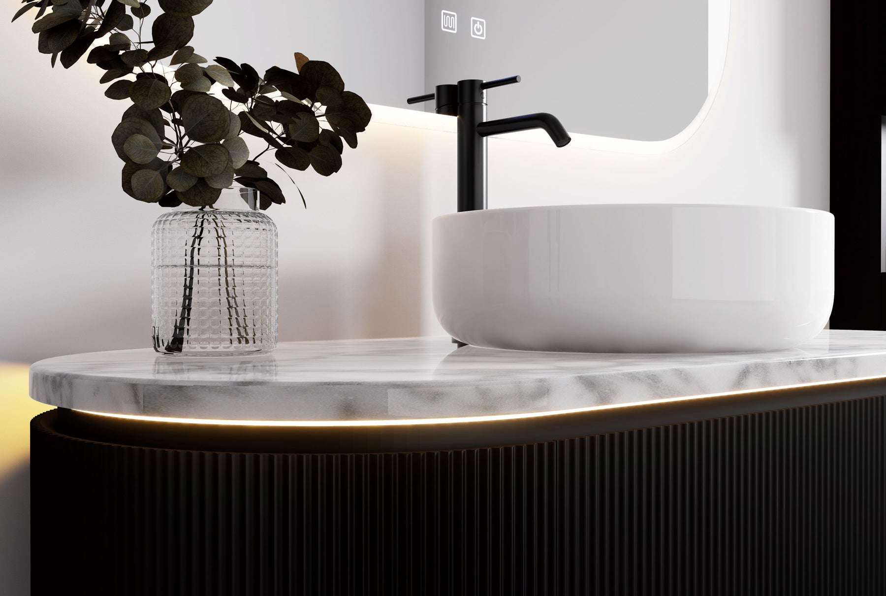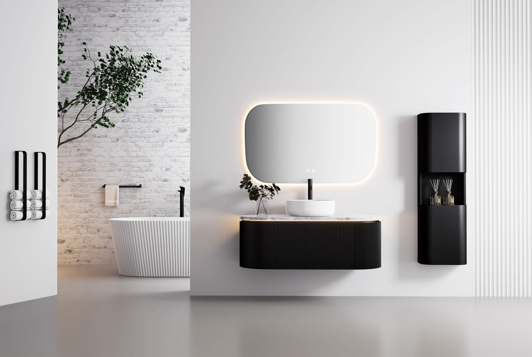 Regular price J$189,000.00This floating vanity blends Scandinavian warmth with modern sophistication. A ribbed Matte-look cabinet meets a crisp white basin for a clean, contemporary finish. The integrated LED mirror adds soft backlighting, perfect for calm morning rituals or evening routines.