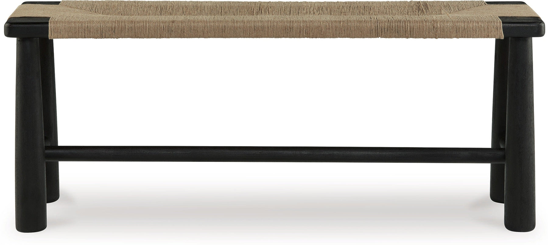 Understated style done beautifully well. The black wood frame and tapered post legs of the Acerman accent bench are a striking contrast with its handwoven natural jute upholstery. Combining a contemporary aesthetic with a mid-century vibe, it's ideal for a living room, an entryway or as the perfect seat beneath a window.