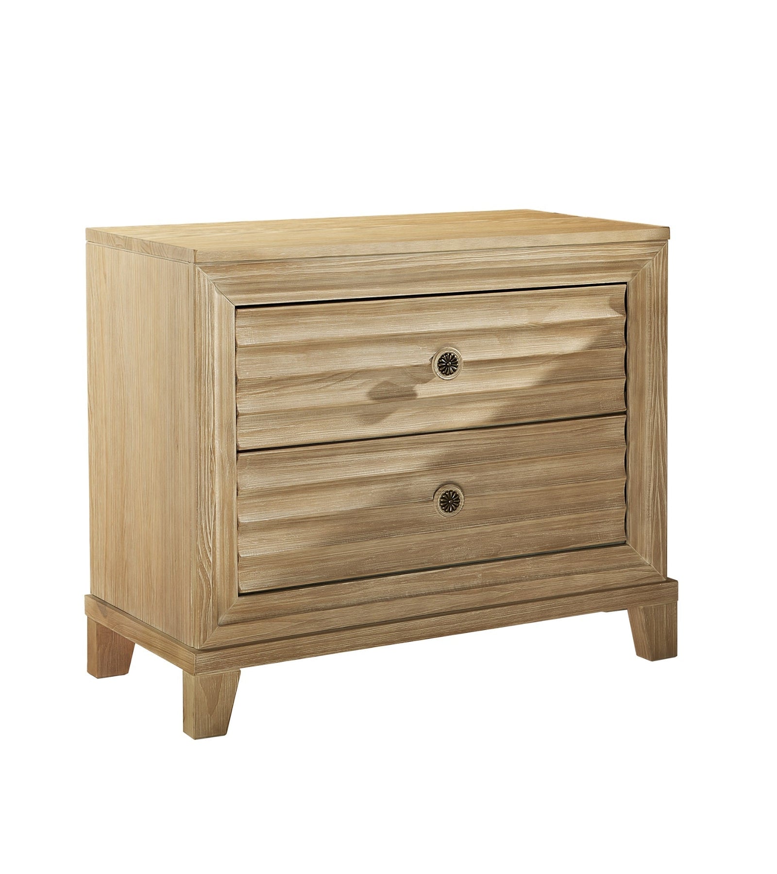 Crafted in a light wood finish with subtle ridged detailing and decorative knobs, it offers convenient storage and a clean, natural look that pairs beautifully with modern or rustic décor.