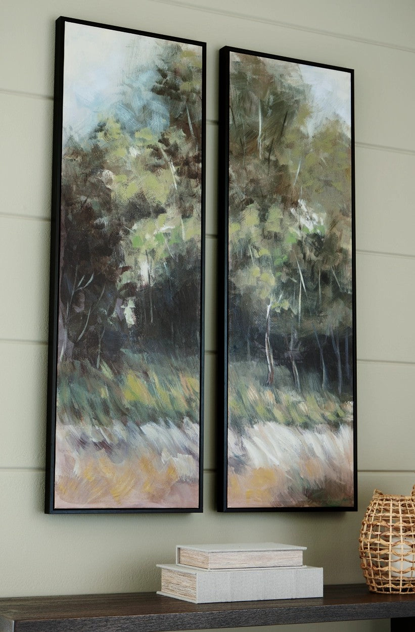 Regular price J$29,900.00Double down on natural beauty with a stunning treescape. The Dansot wall art set brings the outdoors in, showcasing a whimsical wooded scene in green, brown, blue and white. Ideal for modern farmhouse or casual interiors, it grounds your decor with its intricate interpretation of nature.
