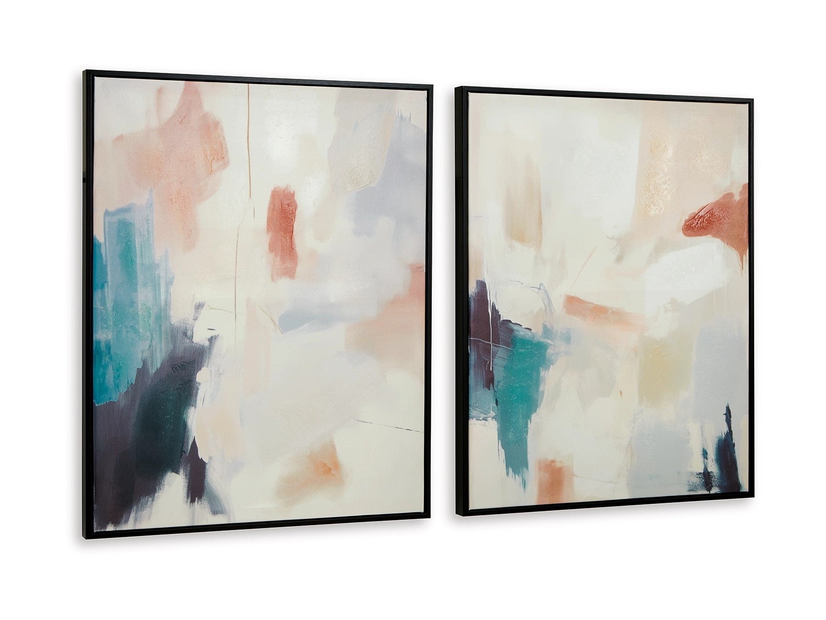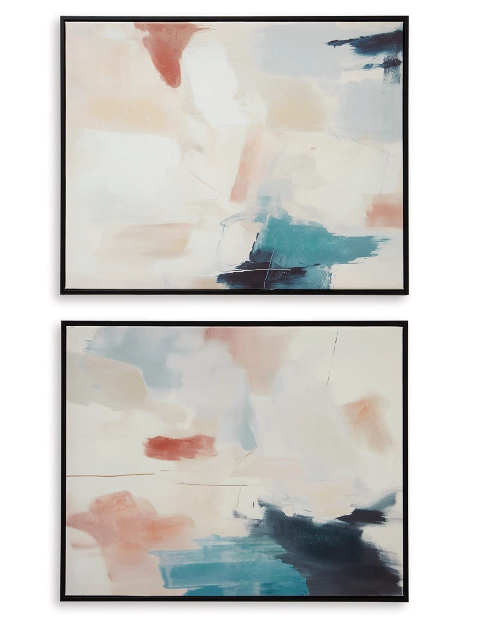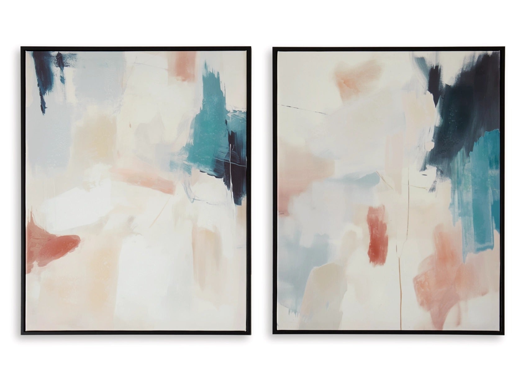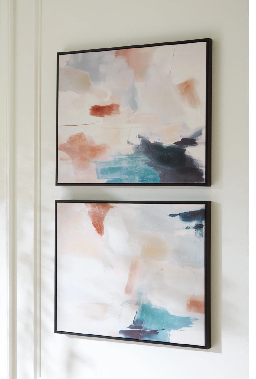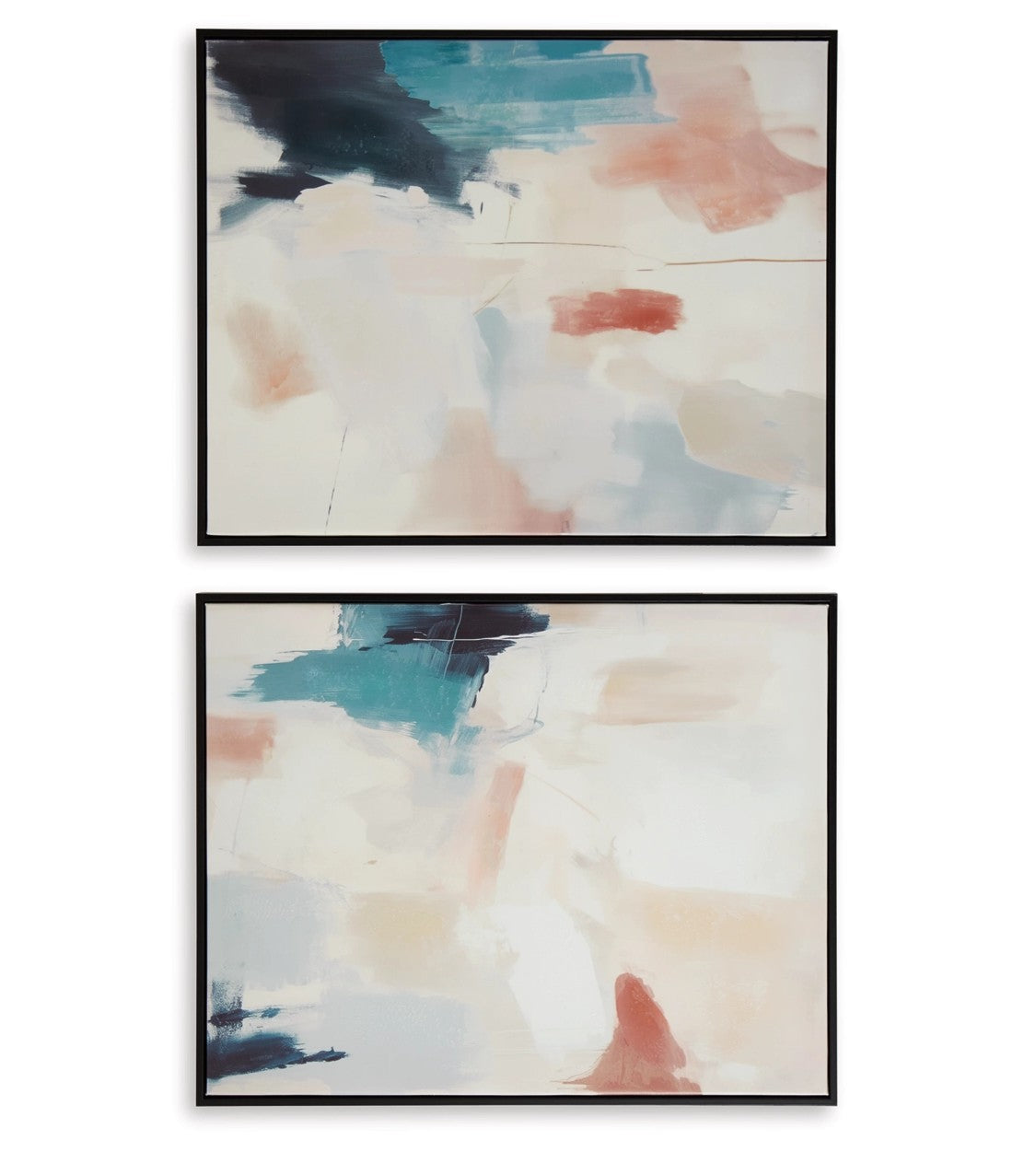 Regular price J$22,900.00If you agree art should be open to interpretation, then let the Caldish wall art set express itself. We love how the quiet shades of blue, pink, white and cream softly speak volumes from the canvas. Hand-painted embellishment adds dimension that makes it all the more special. The ability to hang these framed canvases in four ways provides more versatility in curating your space.