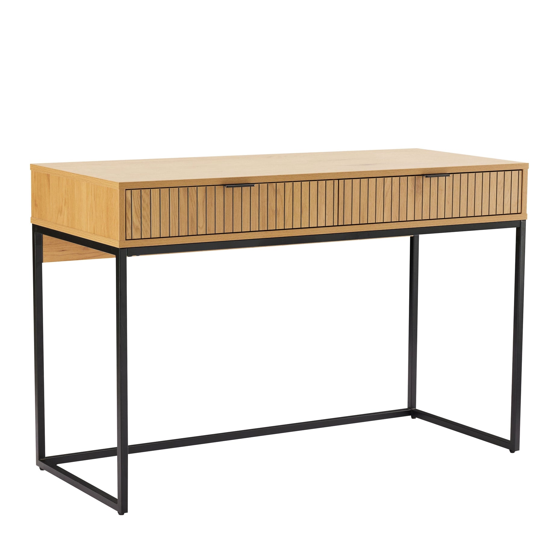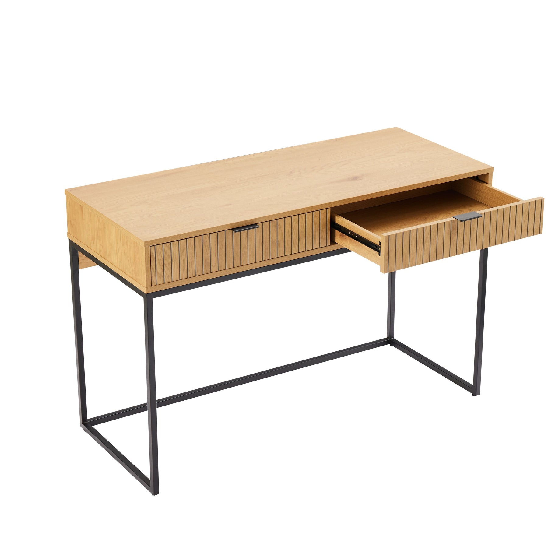Regular price J$29,900.00A stylish oak and black work desk with sleek metal accents and a spacious surface, perfect for home offices or study areas.
