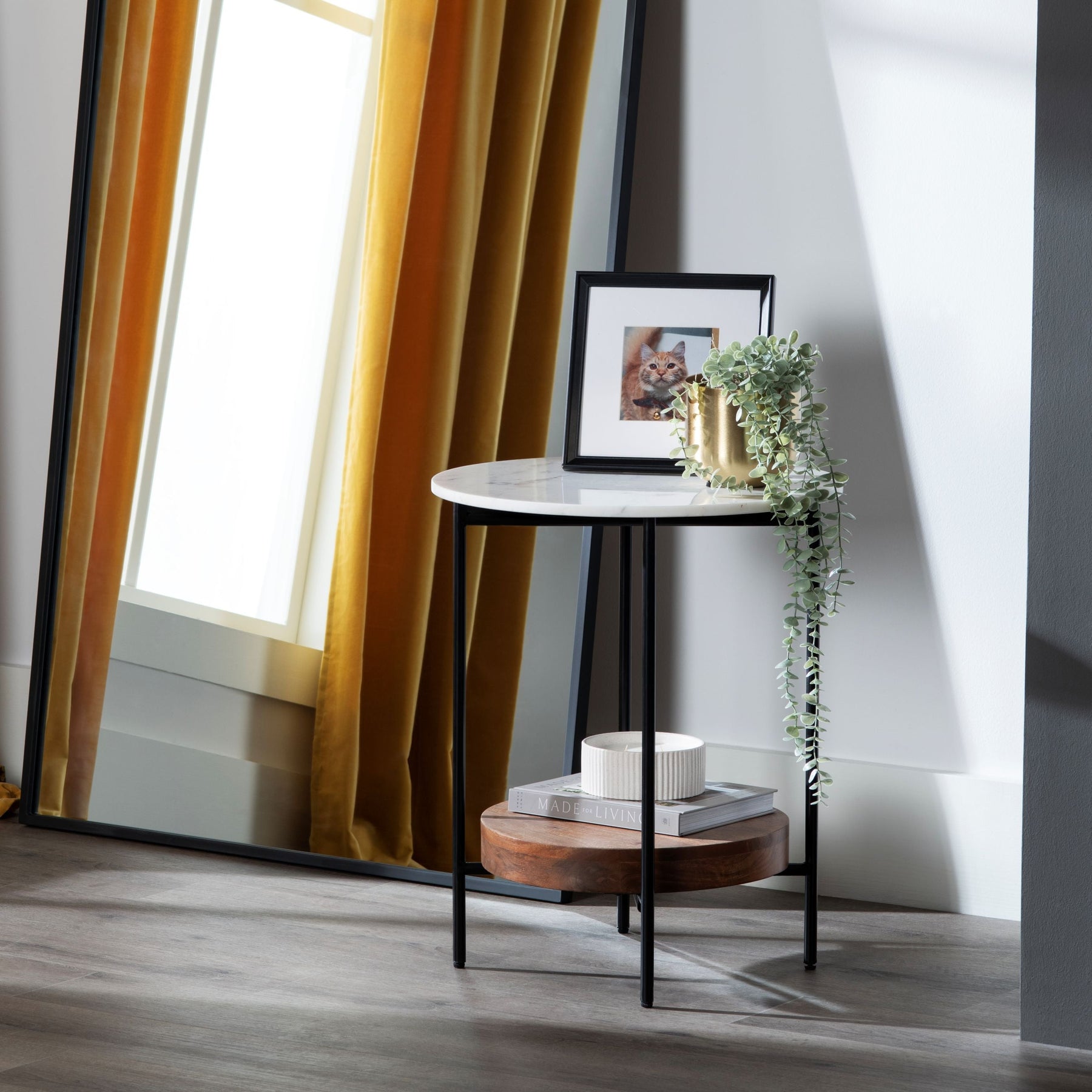 Regular price J$29,900.00Inspired by designs from the Mid-Century Modern era and the simplicity of organic materials, the Brewpub End Table is a masterpiece that commands attention. This rugged piece boasts a four-post leg design crafted from metal in a matte black finish. Perhaps its most distinctive feature, the oblong tabletop features a series of natural mango wood panels in a stained rich brown color. This stylish, low-profile table is an ideal choice for any dedicated entertaining space.