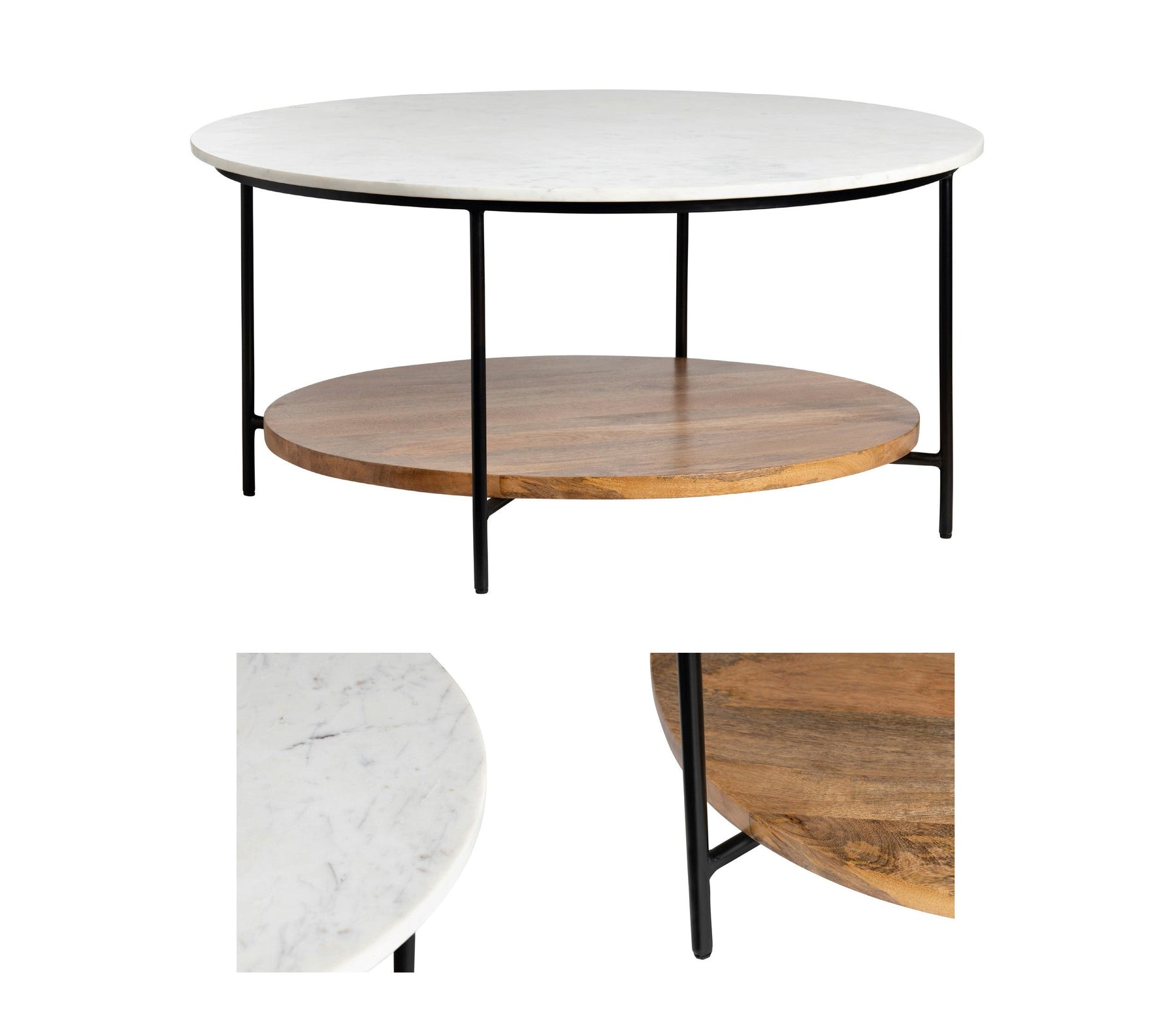 Regular price J$74,900.00Let your inner interior designer shine with the Brewpub Round Cocktail Table by Crestview Collection. Thoughtfully designed with precision, the frame of this oblong table is crafted from metal in a sleek, matte black finish. A natural mango wood storage shelf sits at the base of the metal frame and boasts a stunning array of earthy hues and texture. Topping the piece is a slab of natural white marble that elevates the design for a mesmerizing play on mixed materials and contemporary aesthetics.