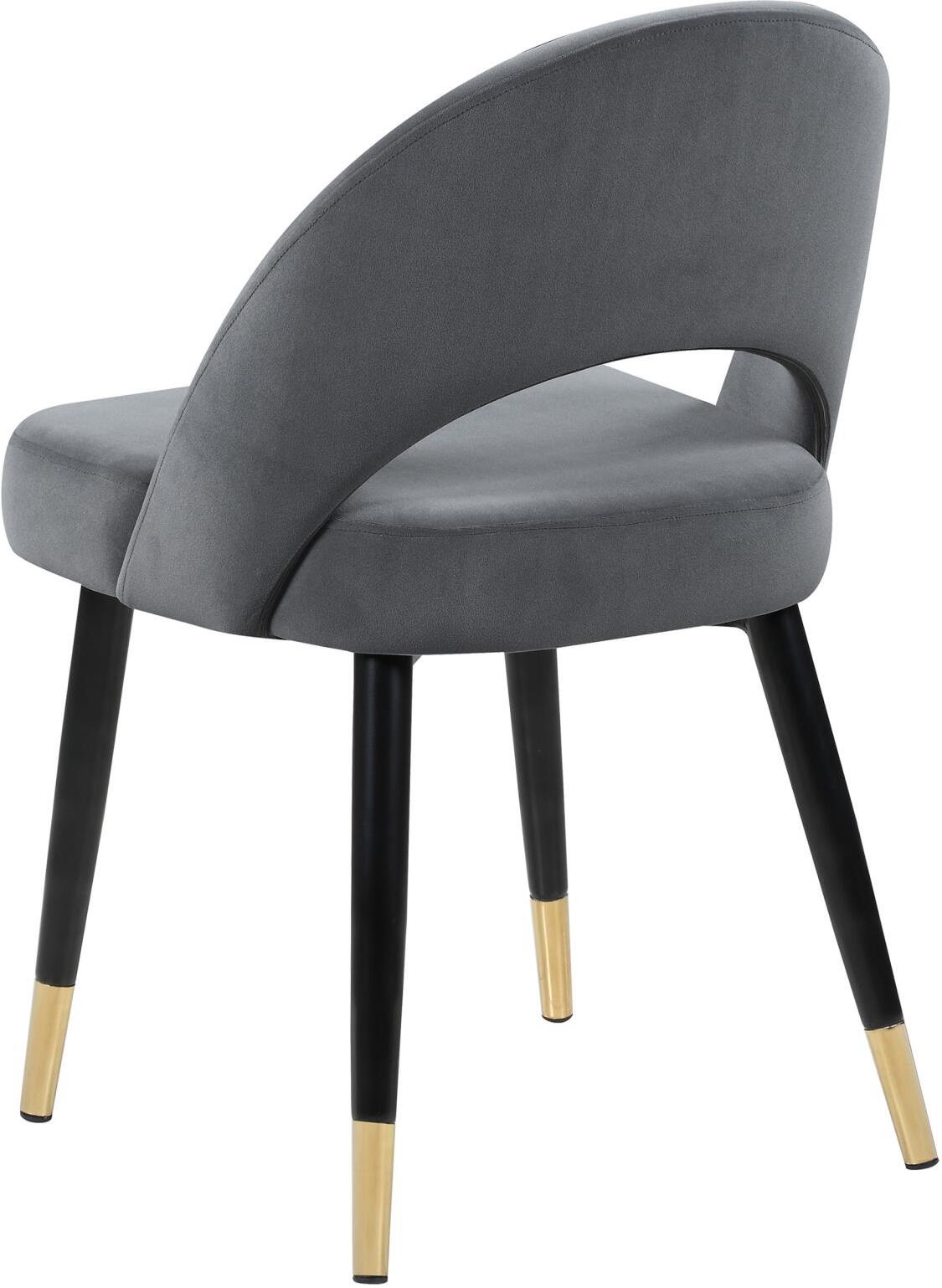 Regular price J$32,900.00This set of two dining chairs features an elegant bucket style seat that lends a retro-inspired Mid Century modern look. Each chair offers long-lasting, supportive seats for each dinner guests, wrapped in faux leather upholstery that complements numerous color palettes and adds a bold statement piece. Flared, tapered legs further lend to the vintage flair. Gold capped feet offers a dramatic, regal Hollywood glam touch. Pull these chairs up to a spacious rectangular dining table to host a formal dinner or cocktail night.