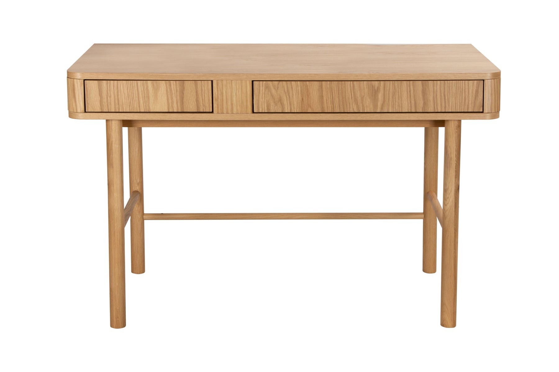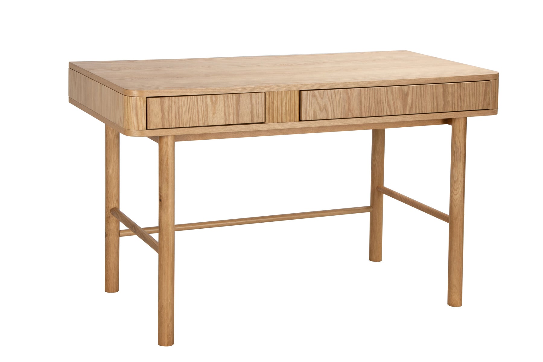 Regular price J$49,900.00This modern oak-finish writing desk features rounded edges, clean lines, and slim cylindrical legs for a warm, minimalist look. With built-in drawers for easy storage and organization, it’s the perfect blend of style and function for any home office or workspace.
