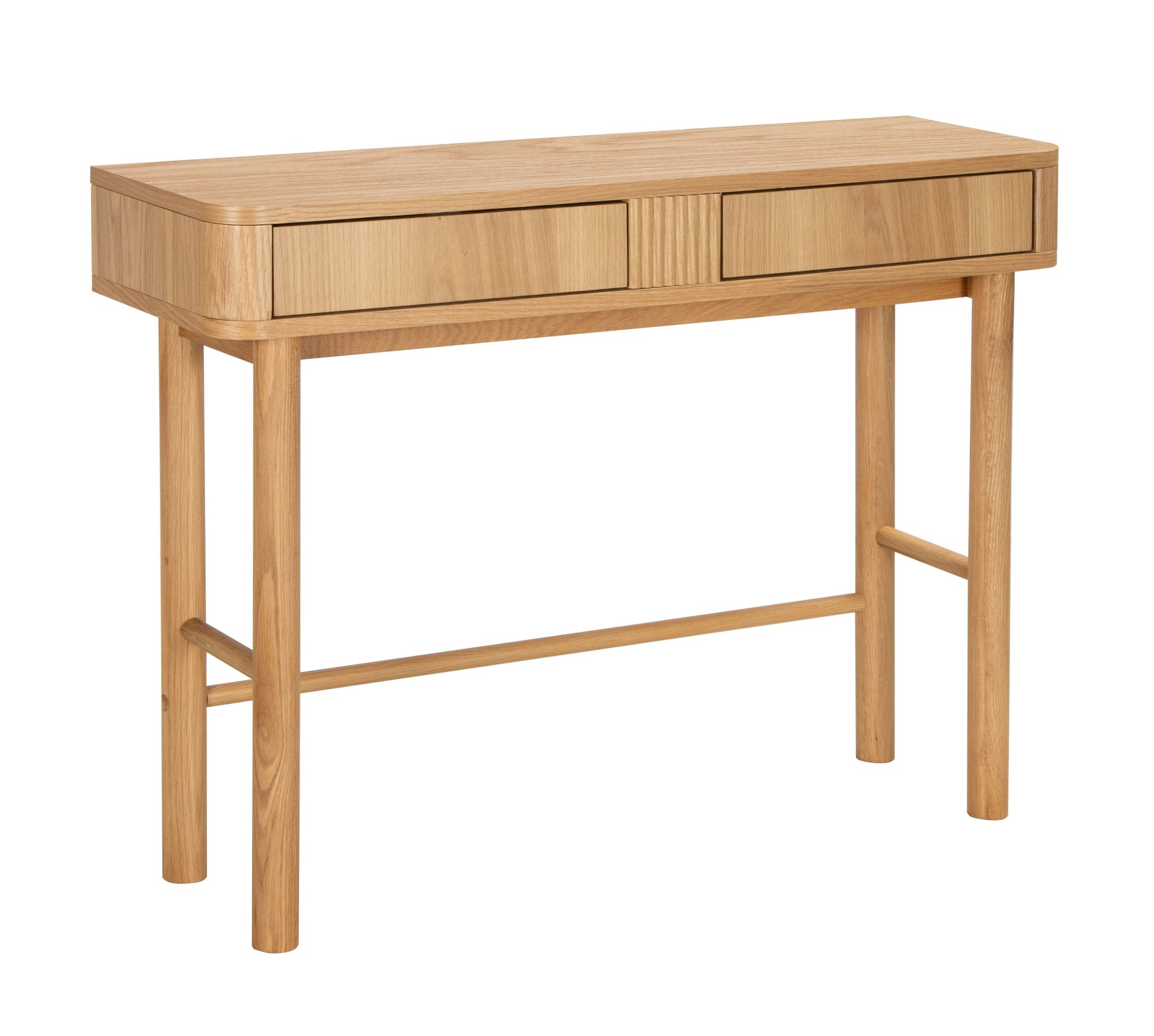 Regular price J$39,900.00This slim, modern console table features a natural oak finish, rounded edges, and minimalist legs for a clean, airy look. With two sleek front drawers for hidden storage, it’s perfect for entryways, living rooms, or bedrooms—offering style and function in a compact footprint.