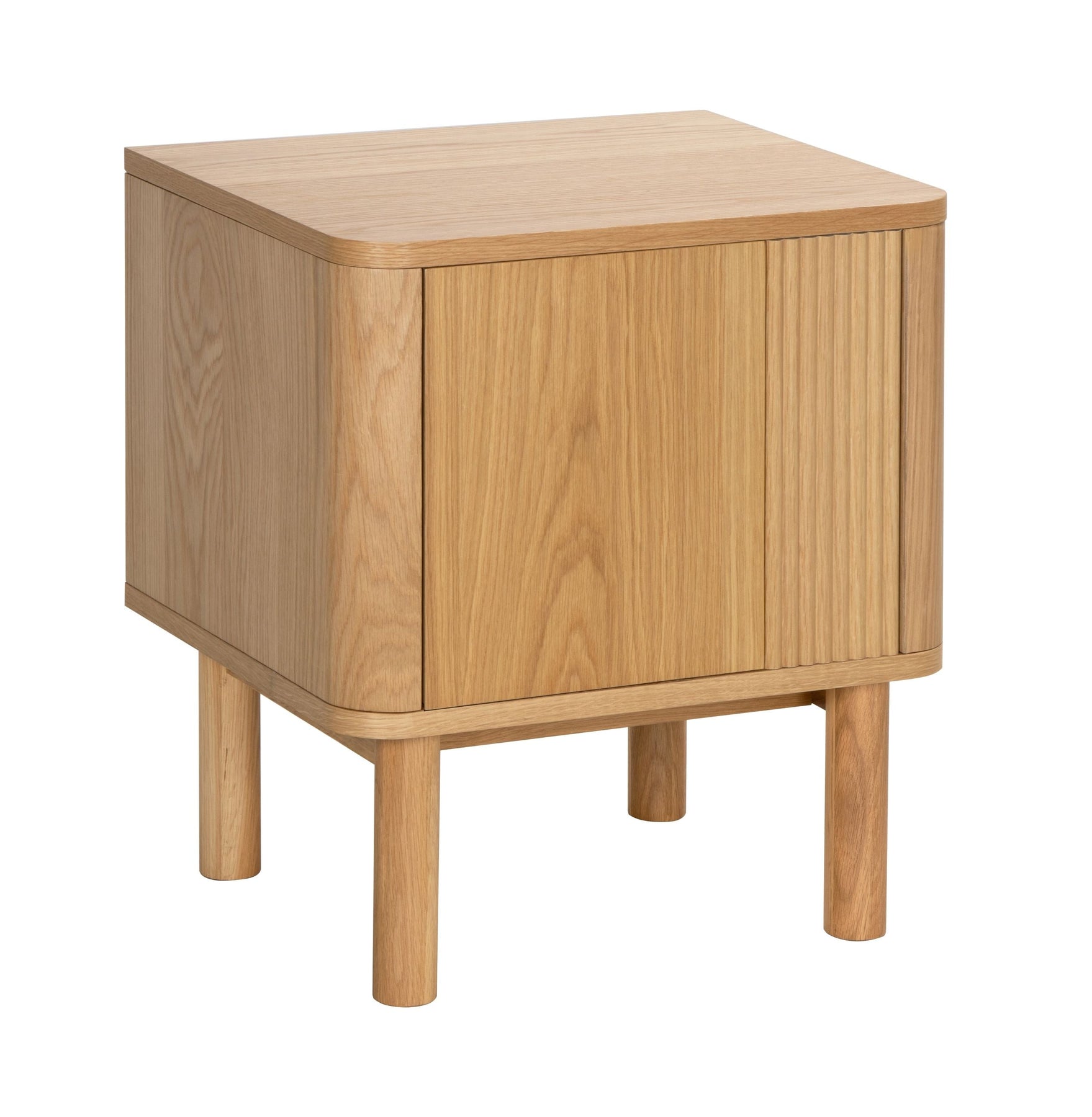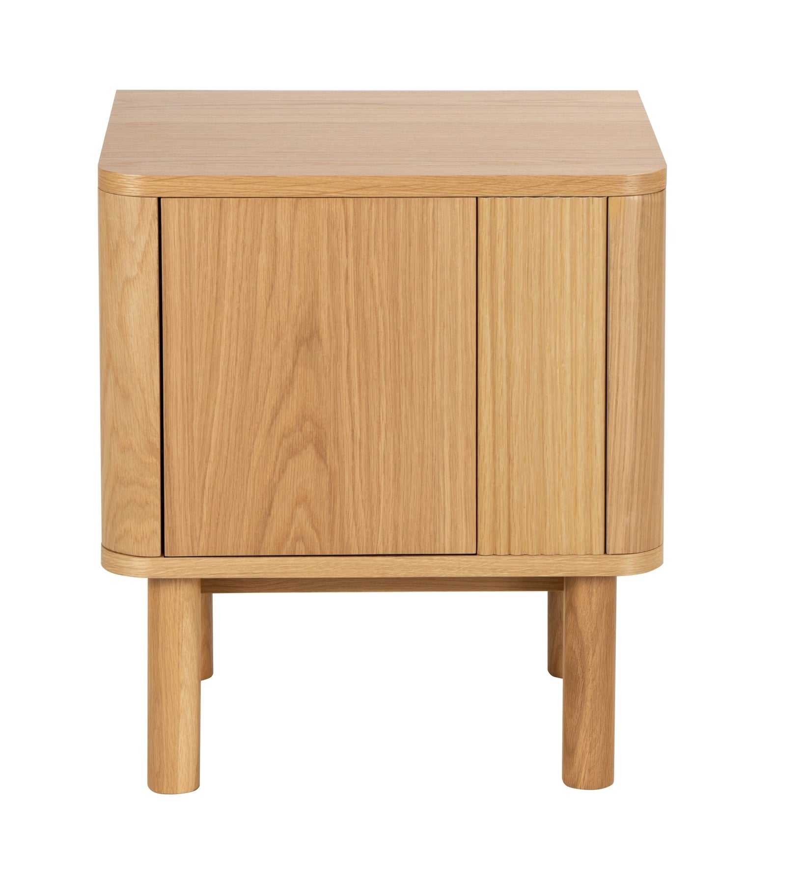 Regular price J$26,900.00This modern oak-finish nightstand features smooth rounded edges, slim cylindrical legs, and a clean minimalist door front. With hidden storage inside, it’s a stylish and functional piece for keeping bedside essentials neatly organized.