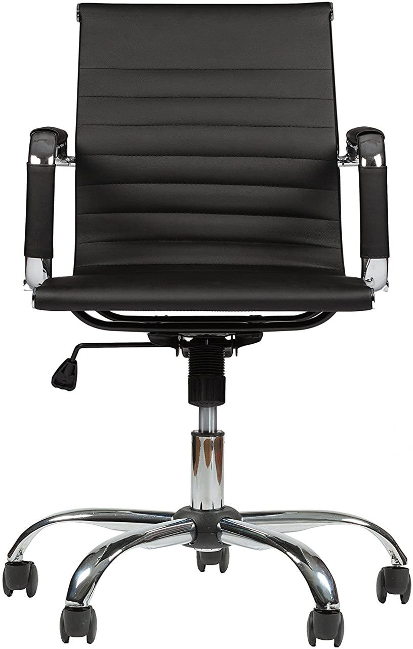 Regular price J$31,900.00 Sale price J$19,997.00 Save J$11,903.00Wherever you've set up your home office, you're going to need a chair that's comfortable and supportive during a long day of work. Adding a seat like this to your office ensemble is a great option for working in modern style. Crafted from a chrome-finished metal base and frame, this piece is wrapped in faux leather upholstery with lumbar support for a cushioned touch during those long sessions at your desk. And with a swivel seat, adjustable height, and rolling casters, this you can easily move this piece to suit your needs.