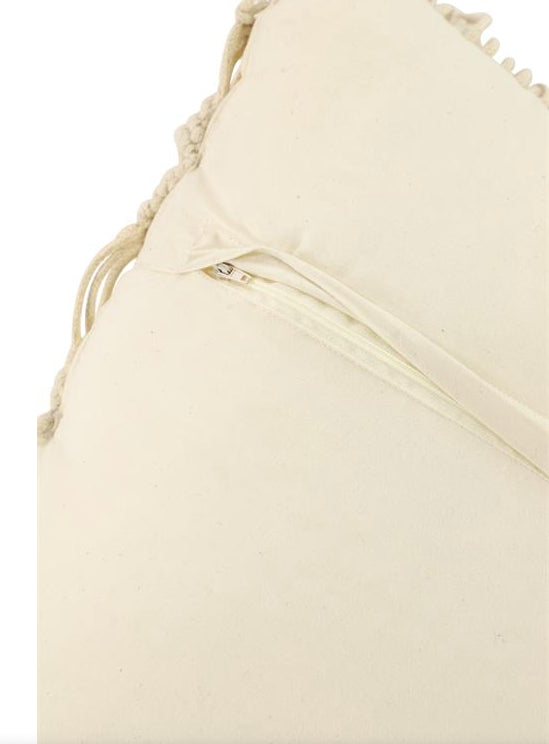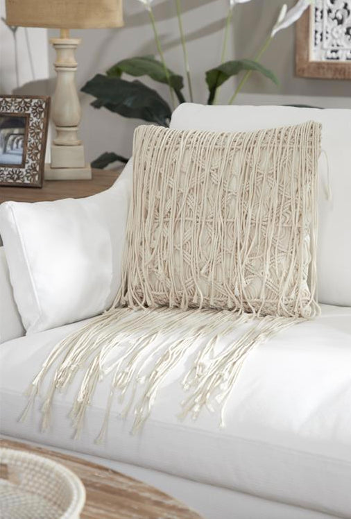 Regular price J$5,900.00Handmade in India, this throw pillow is crafted from 100% cotton in light eggshell beige with a large, open weave embroidered pattern over the beige pillow. This decorative pillow is 100% polyester interior cushion which keeps its plump shape.