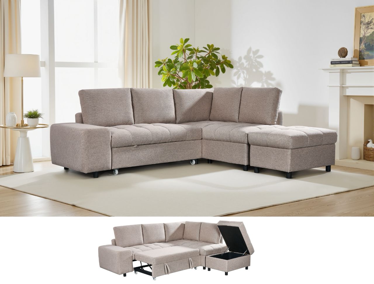 Regular price J$199,000.00Add versatility and comfort to your living room with the City 3-Piece Sectional. Upholstered in a soft oatmeal fabric, this sectional features deep tufted seating, plush cushions, and a chaise design perfect for lounging. Its pull-out sleeper function and hidden storage make it both stylish and practical — ideal for modern living spaces.