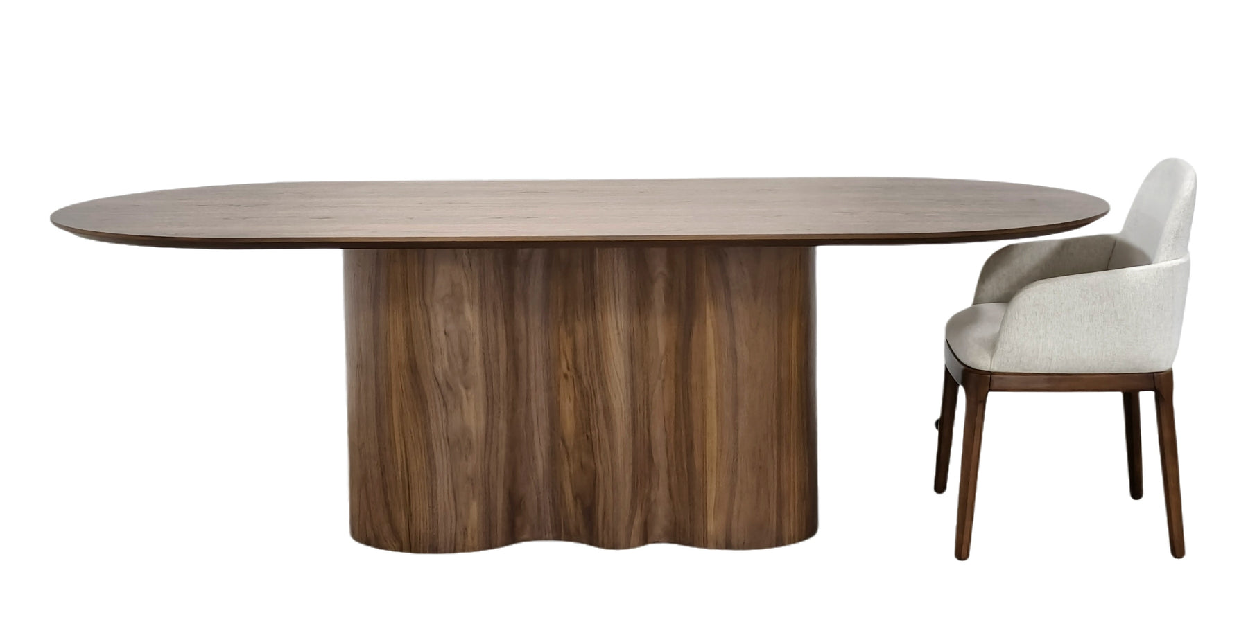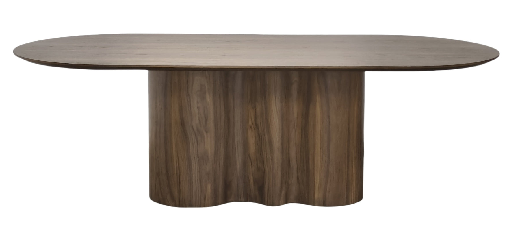 Regular price J$119,000.00Make a bold statement with the DT212 Dining Table — where organic curves meet modern craftsmanship. Designed with a smooth oval top and a distinctive fluted pedestal base, this piece brings warmth and sophistication to large dining spaces. The rich wood veneer highlights natural grain variations, creating a timeless centerpiece for family gatherings or elegant entertaining.