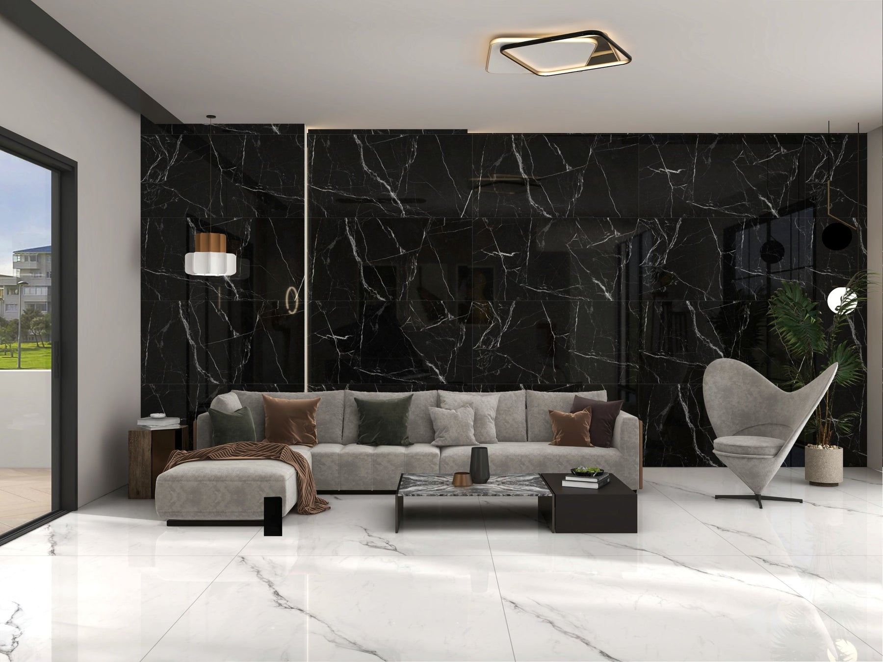 Fury Black Porcelain Floor Tile 24x47"