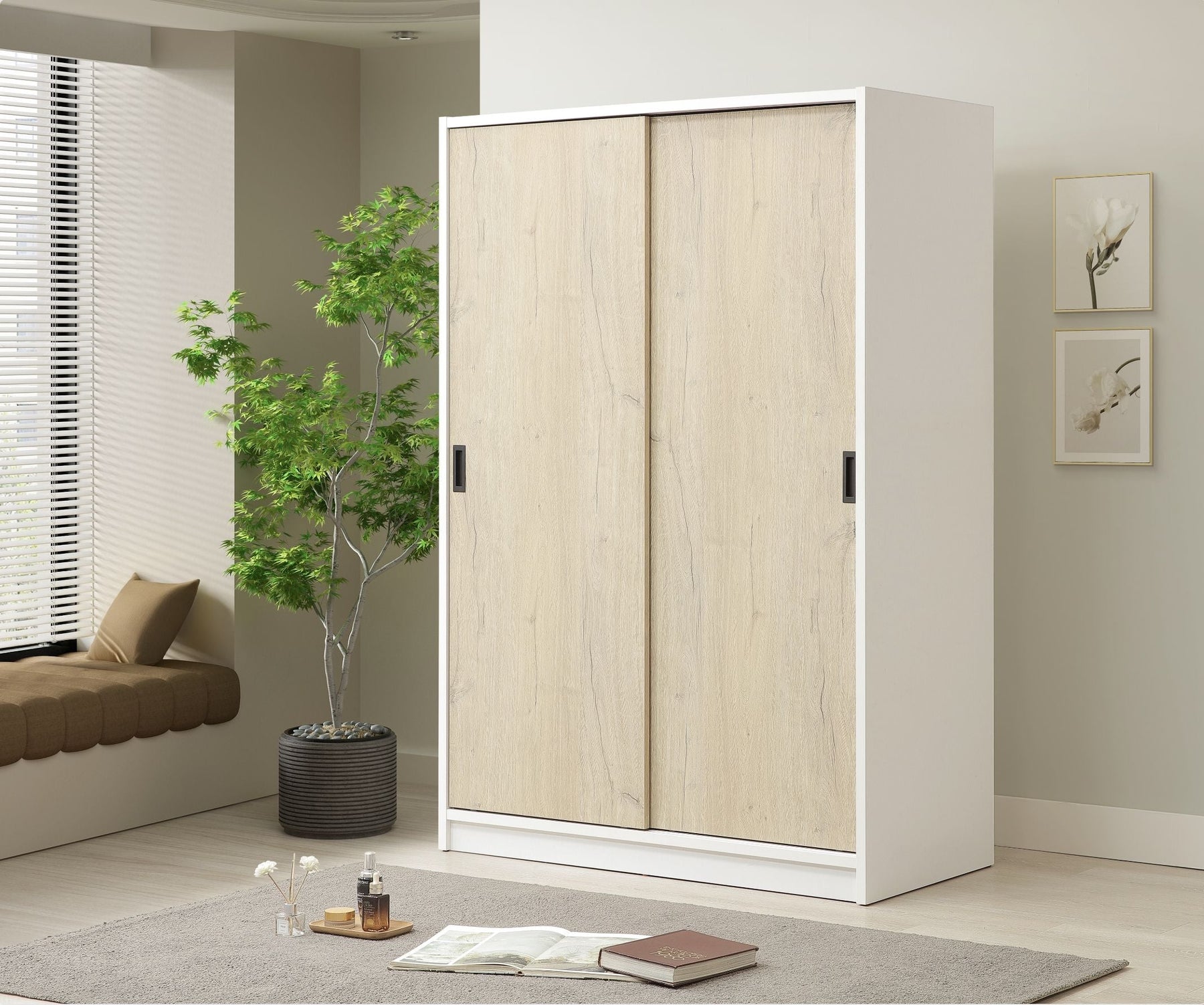 Regular price J$49,900.00A sleek, space-saving wardrobe featuring smooth sliding doors and a natural wood-look finish. Its clean white frame blends effortlessly into any room, offering practical storage for clothing and essentials.
